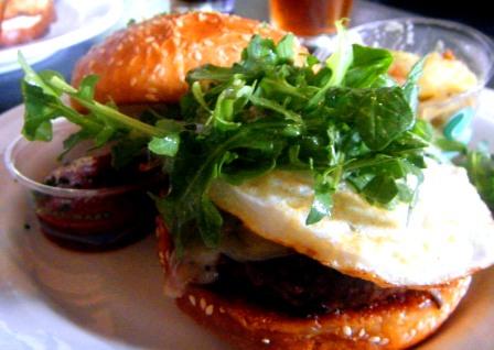 I am no stranger to Flying J Farms beef. It’s some of the best we’ve tasted. I had to order the Diner Burger: made with ground beef from Flying J Farm‘s grass-fed and finished cows, on grilled brioche, topped with fontina, a fried egg and peppery arugula. The egg still had a delicious thick yolkiness, that further “sauced” the burger (and my shirt, since Persephone is nothing if not a graceful eater). It was tremendously good. But what really set it off was the lovely tomato marmalade. In a word: finesse.