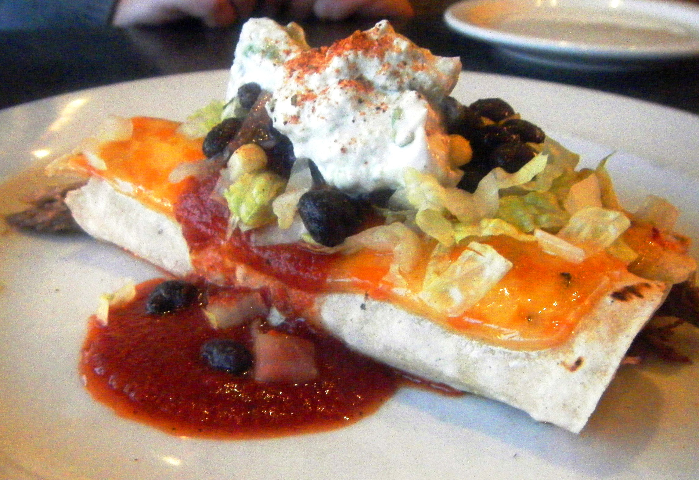 Being from Texas, I can’t pass up an opportunity to try an enchilada in any form, and the Rossi’s Short Rib Enchilada was amazing. I mean come on! Short ribs! In an enchilada! I must eat this. I did. Also know this about Maia: she has really lovely manners. Persephone, being presented with a plate of enchiladas begins by greedily rolling up her sleeves and grabbing a napkin. Maia, on the other hand, very politely cuts one in half (????) to put on her plate. Come on hon, dig in. The tortillas were filled only with pulled short ribs with the perfect ratio of meat to fat (critical), then rolled and topped with melted cheese, black beans salsa and a cool avocado creme fraiche. They were good.