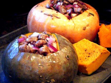Roasted Hokkaido Pumpkin Stuffed with Italian Sausage and Mushrooms