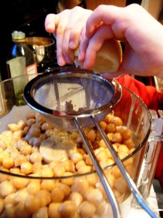 Cherub, 3 (and a half now! she’ll tell you), was a big helper in the kitchen tonight. And as a result, she totally nom’ed her dinner. It didn’t hurt that one of her favorite things to eat is hummus anyway. We made some homemade tonight since we had leftover chickpeas from last night’s dinner. I served her hummus with some sumac-dusted salmon topped with a greek yogurt and cucumber sauce and warm flat bread. Even with the “help” from Cherub, dinner was made and on the table in 30 minutes. It was a fun evening in Persephone’s Kitchen. Lots of love. You could taste it in the food, too.