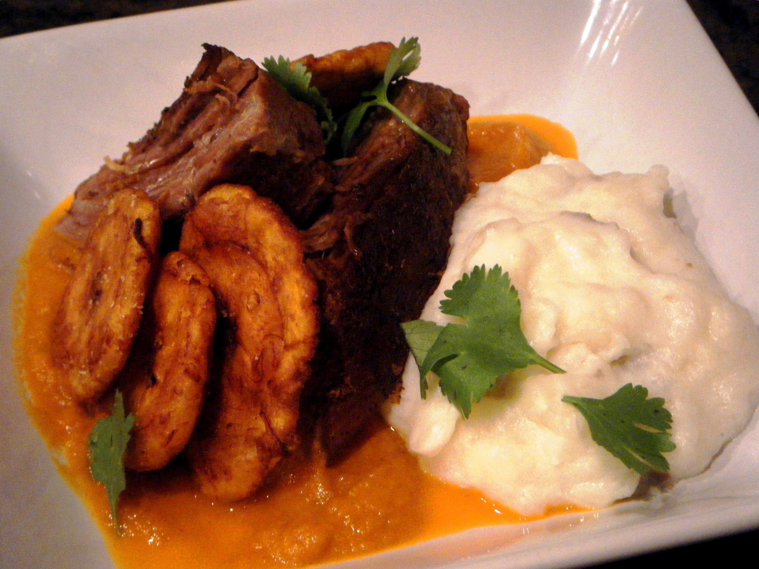 So when you’re gone most of the day, you need something that you can stick in the oven on a really low heat, or perhaps in the crock pot, if that’s your weapon of choice. A tri-tip roast is your answer. It’s an inexpensive cut that I’ve found works beautifully with Cuban flavors. It can stand to be braised for a good while. Because there are only two per cow, they may not be behind your butcher’s window – so just ask. Today, the roast was cooked along with a combination of peppers, onions and carrot, which was later pureed and turned into a lovely sauce that pulled the whole dish together. Served with a sunchoke and cassava mash and a few fried plantains, this is a sturdy meal for a chilly night. Familiar, but with a little bit of newness to keep your interest piqued. Just like a first date.