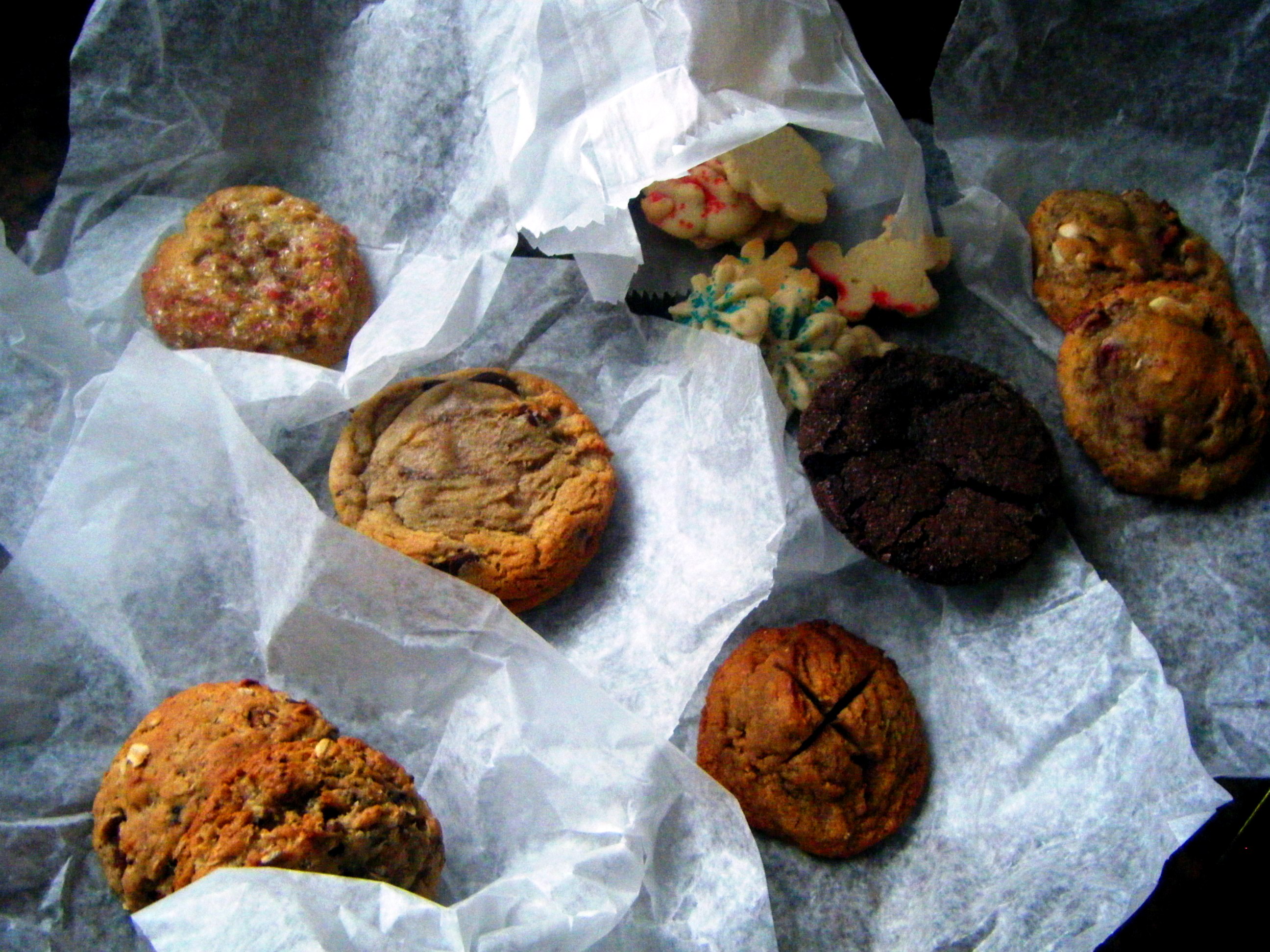 Delivered individually wrapped and all creative tasty flavors – a spicy ancho peanut butter cookie that you couldn’t even tell was vegan was my favorite.  Holiday spritz cookies were also in the bag, Cherub’s favorite.  Chocolate chip with a bit of sea salt were fantastic as well as a dense chocolate-y cookie that had a hint of cinnamon (this one was vegan, too! – I was shocked, shocked I tell you, that I liked something that was vegan).