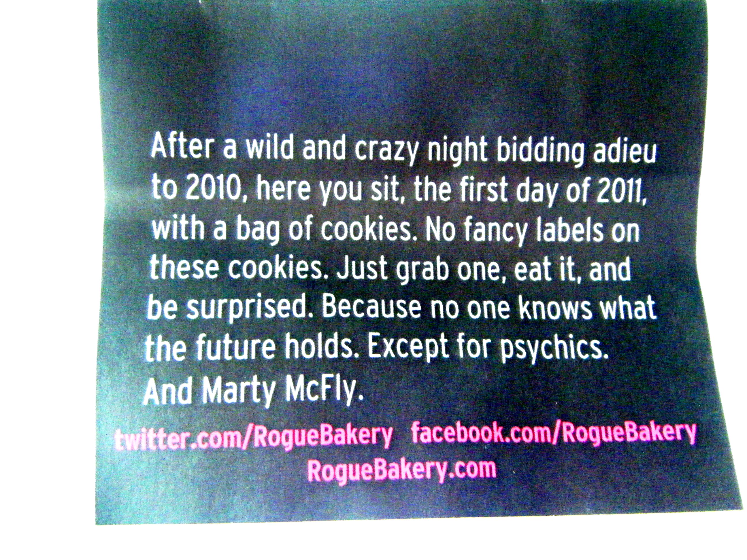 I love it when someone is creative.  And hilarious.  And can bake a mean cookie.  That’s Carl, who started Rogue Bakery.  He’s been around, delivering cookie happiness to Columbus-ites in the know and I finally pulled the trigger New Year’s Eve to have some cookies delivered on New Year’s Day.  Who knew?