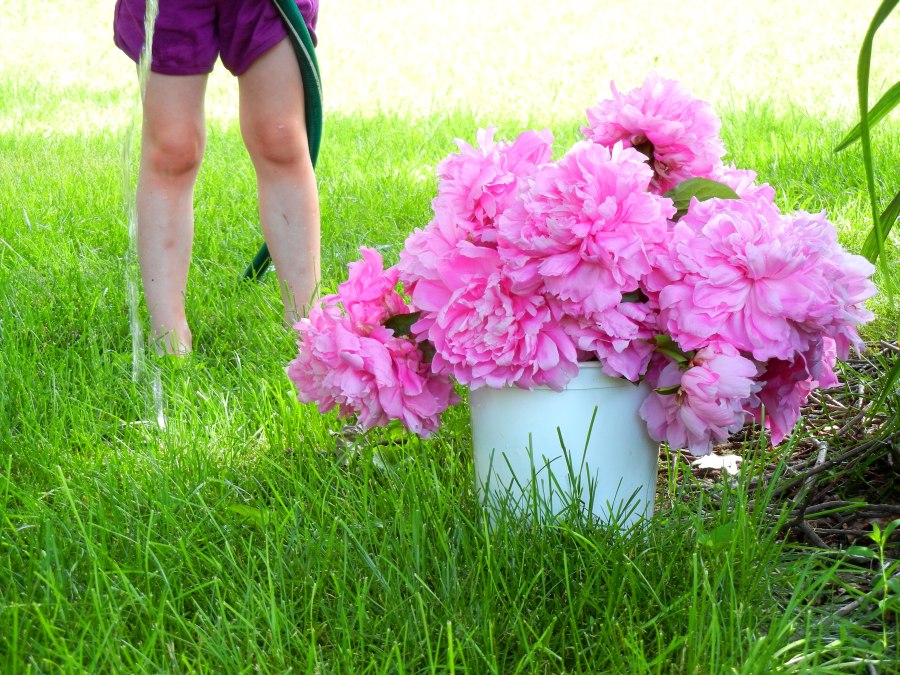 I love peonies and their explosion of petals and entrancing fragrance. So, so much. I slog buckets filled to almost overflowing into the house to set on anything that will hold still. They’re here for such a short time. I am blessed.