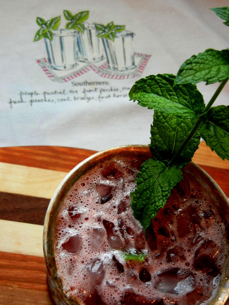 All summer long, as things have grown I’ve picked them. And put them in alcohol. Rhubarb, blueberries, apricots, cherries, peaches. Tonight I enjoyed a fabulous cherry mint julep.