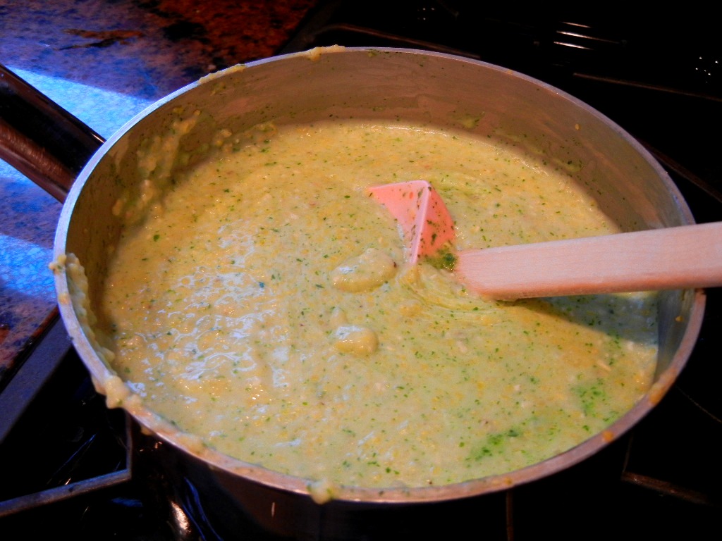 When the grits are fully cooked, stir in the pureed greens, butter and cheese. Taste for seasoning and adjust as necessary.