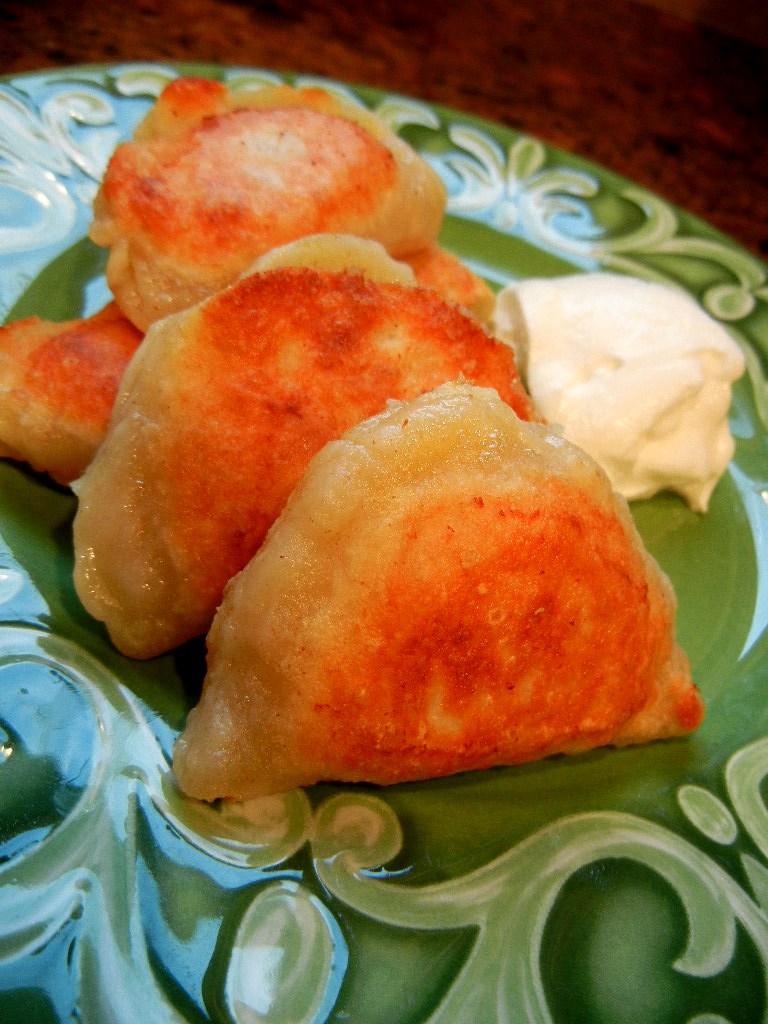 For savory pierogi, make sure to caramelize massive quantities of onions in massive quantities of butter. Then lift out just the onions and fry the tiny packages until golden brown. Serve with the onions, copious quantities of sour cream, and grilled kielbasa. For dessert pierogi, saute them in butter, then sprinkle generously with powdered sugar.