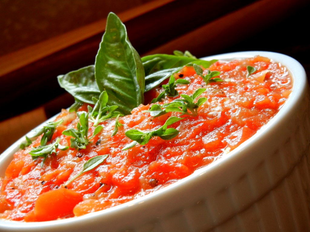 2 red bell peppers, blackened over a grill or stove, skin, stem and seeds removed, chopped1/2 baby eggplant, blackened over a grill or stove, skin and larger seeds removed, chopped